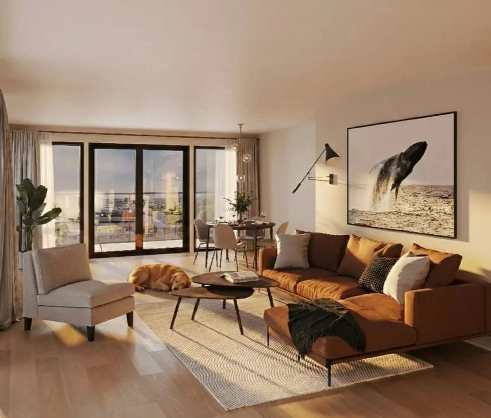En fly-through som glir rundt fasaden i kveldslys. Et kamera som zoomer inn mot inngangen mens hverdagslivet utspiller seg rundt. En cinematic presentasjon klar for investormøter, sosiale medier og salgsstart.